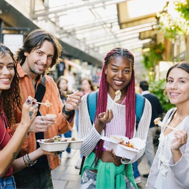 Authentic Asian street food tastings from highly rated local eateries while socialing with like-mined people.